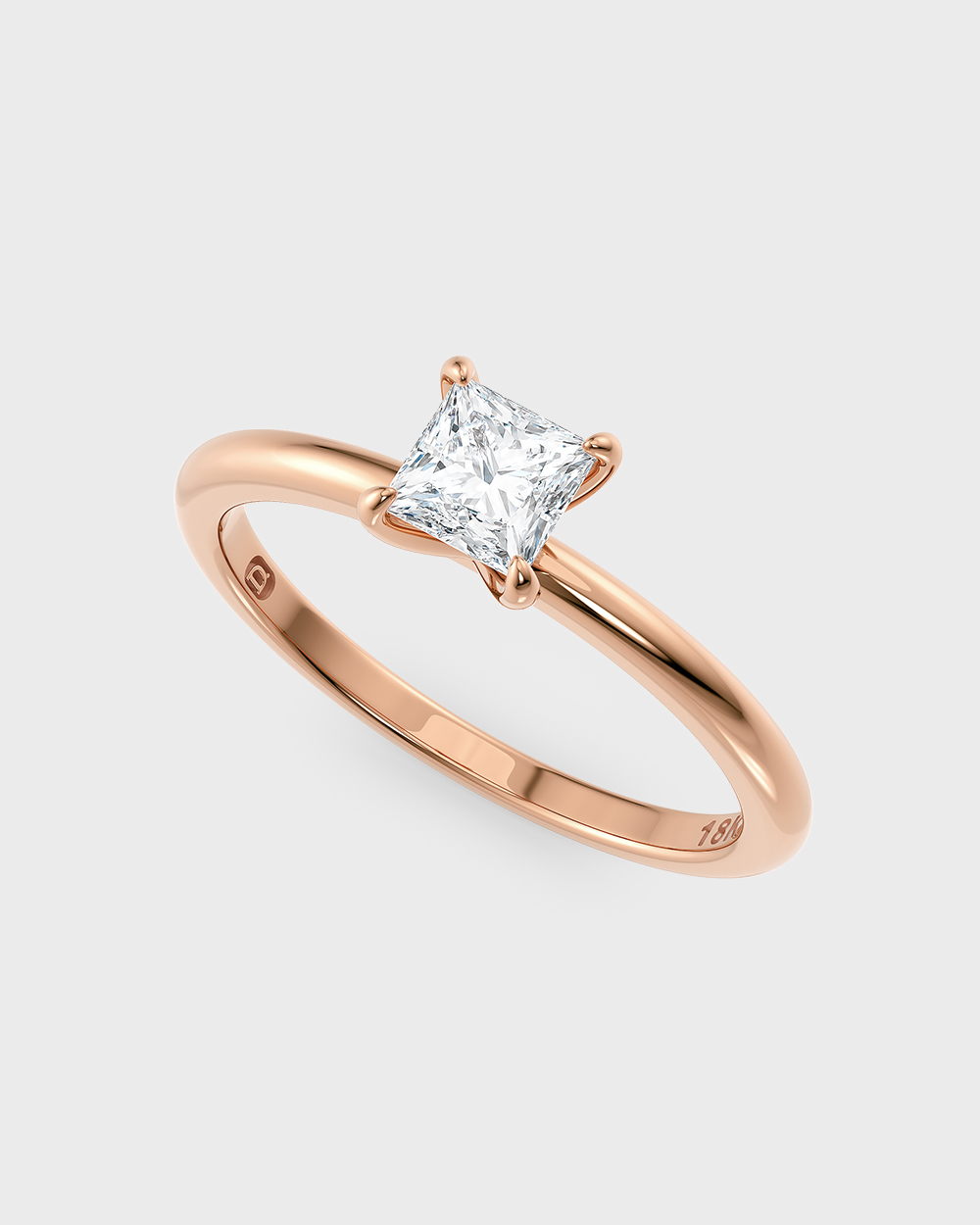 Fora de Estoque Material Ouro Rosé 18k Pedra Diamante de Laboratório – Lab Grown Diamond de 50 pontos Cor: E/F Pureza: VS2 Lapidação: Princess Medidas Largura aproximada: 1,7 mm Altura aproximada do aro: 1,6 mm Altura aproximada da garra: xx Peso aproximado: 2,55 g Anéis de Noivado